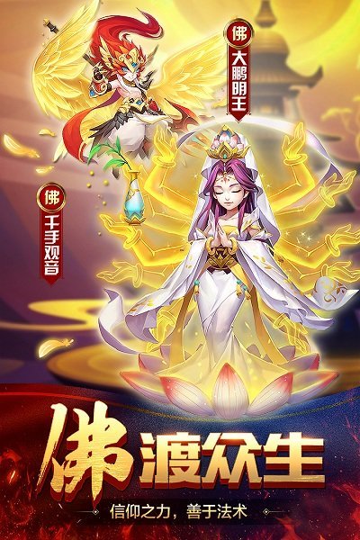 数百张画工精美的西游、封神卡牌角色,持续更新中。取经师徒五人组、牛魔王一家老小、金角银角两兄弟、四大天王,这些全都有!上古仙魔为你而战,打造你的神话全明星阵容!
