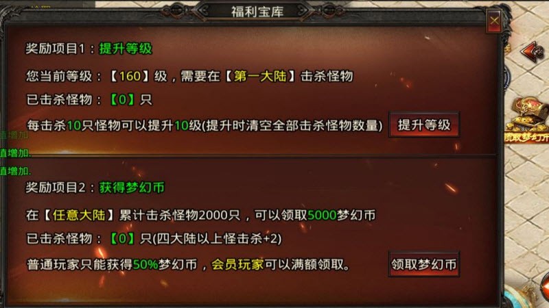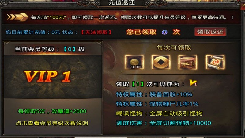 开服四格神器上线就送,本服每日福利天天免费领取累计充值。