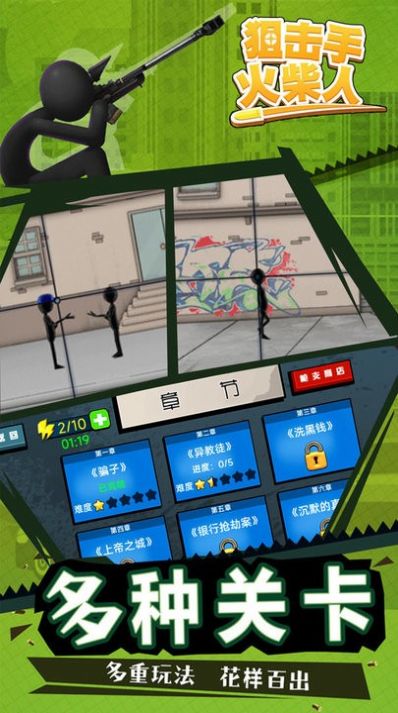 狙击手火柴人作为一款非常好玩有趣的休闲射击类型的手游,全新物理引擎打造出3D效果,手游更逼真。在游戏里你可以展开全新的冒险,各种不同的射击模式为提供。灵活的掌握各种射击技巧,争取在所有关卡中能够获得更多你想要的东西。感兴趣的用户抓紧下载体验吧!