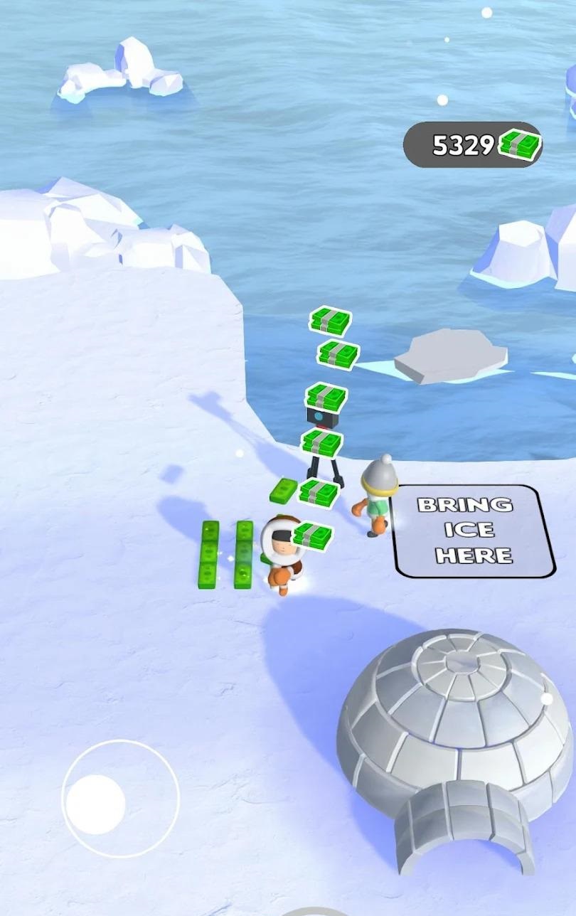 1、真实的3D游戏世界,去自由移动角色,进行冰屋建造;