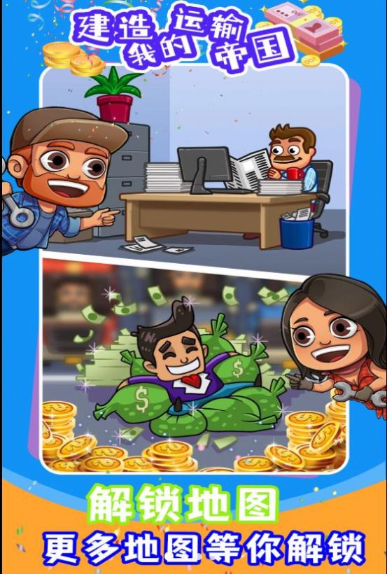 建造我的运输帝国游戏是一款有着卡通画面的策略经营游戏,解锁出更多的地图,你就可以更好的完成经营任务,整体操作非常的流畅,玩法很新颖,没有任何的广告,学会如何管理自己的火车,将公司发展成一家大企业,虽然一路有很多的障碍,但是只要你努力,就可以拥有属于自己的空间站!