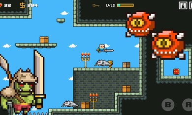 游戏创建了新的像素世界,包括山丘、洞穴、森林和其他大地图。你要控制你的传奇战士,挑战各种冒险的级别,拯救公主,才能将一切都结束,当然自己的实力也会更强。