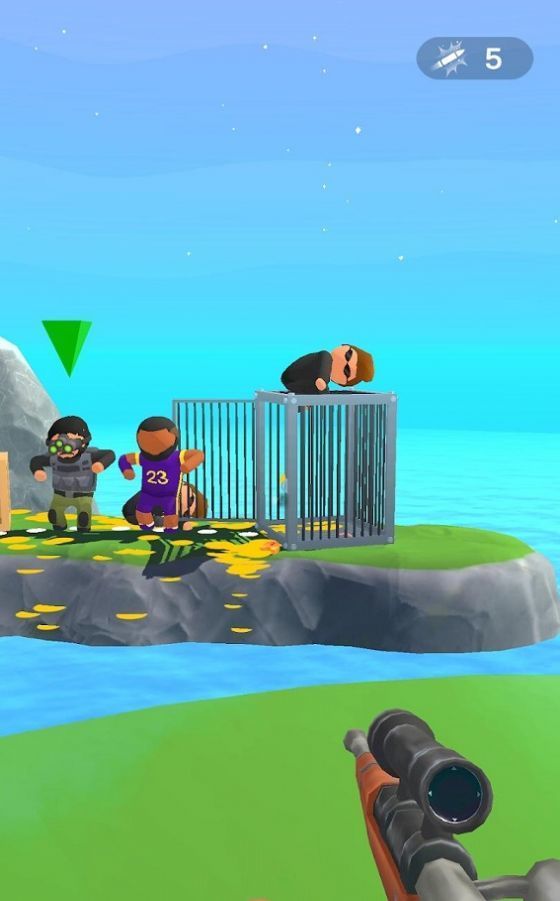 1. 这款游戏有很多不同的关卡,也有很多乐趣。用狙击步枪打碎一根木杆。