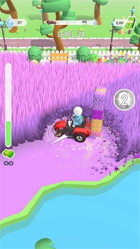 3、割就完事了手游驾驶割草机在游戏里疯狂收割,收获的草可以兑换成钱去购物的。