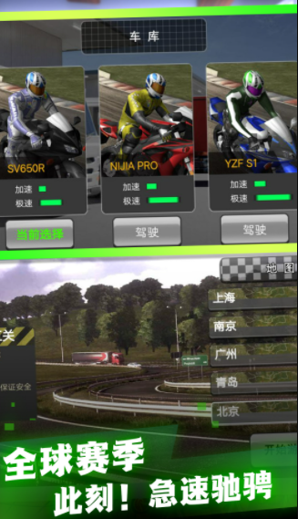 3、作为一名摩托驾驶员,你可以在不同的赛道上提升驾驶技术,赢得比赛。