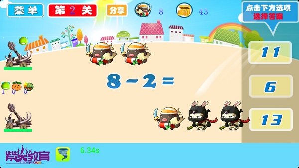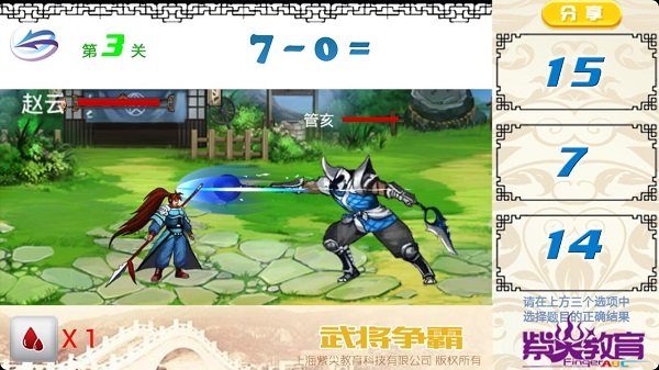 支持三种玩法:幼儿十以内口算(1-4岁幼儿)、口算武将争霸(通关模式)、口算无极限(无尽关卡)