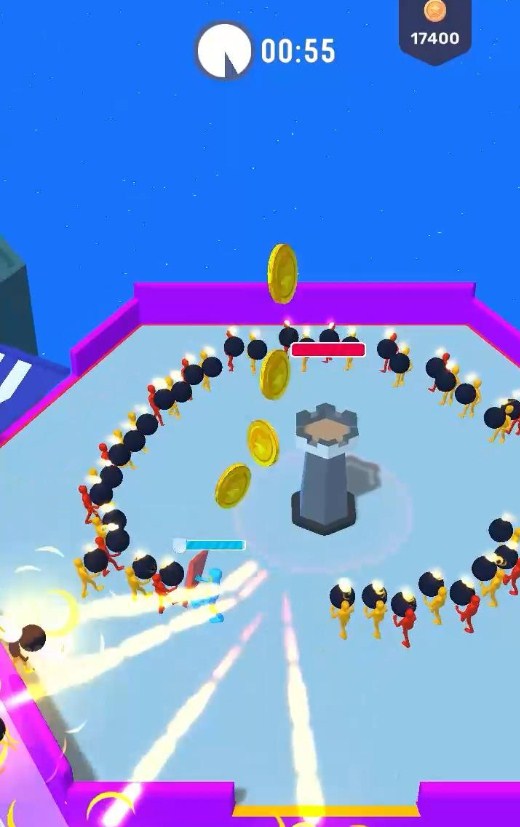 2、只靠一个盾牌,对抗手持炸弹向你冲锋的敌人,如果你不能阻止他们前进,城堡就会被炸毁。