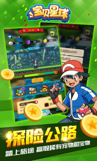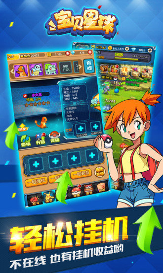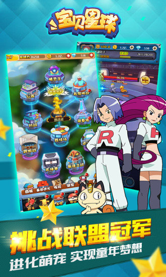 宝贝星球是一款以宠物小精灵为题材的即时战斗挂机游戏。经典进化功能,突破品质、改变外形,提升宠物战力! 炫酷的训练师技能,萌萌的宠物等你收集;手控技能,布阵影响战局、挑战装备塔,探险野外公路赢取装备和宝物。20年经典还原,尽在宝贝星球。
