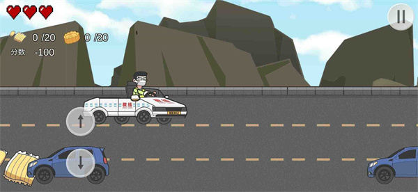 -会有非常多的障碍,路障、相对行驶的车辆,撞上之后就会扣除分数,无法达到起飞程度;