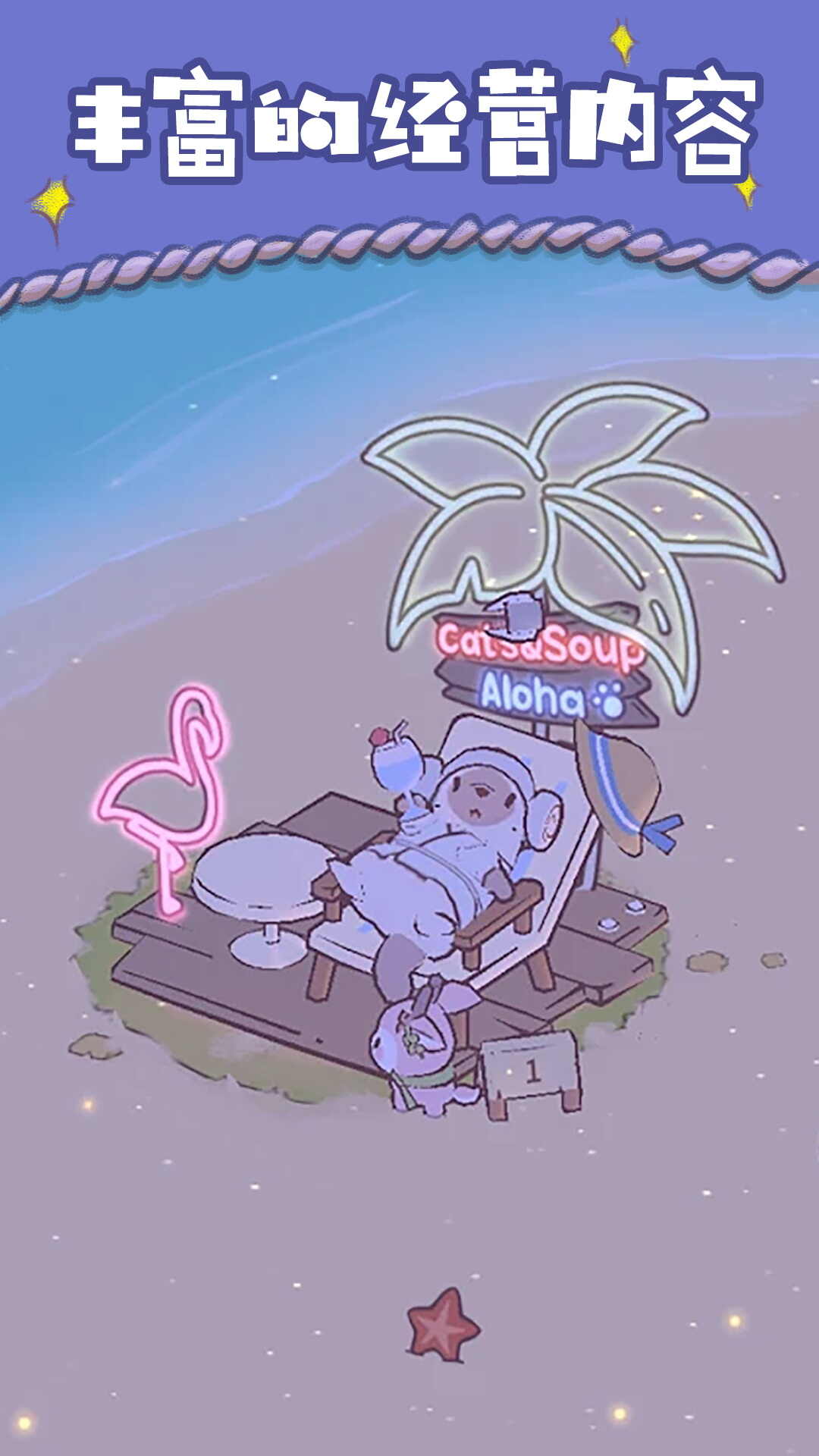 1、游戏中拥有海量的卡通小猫,通过任务获取的动物徽章解锁新的小喵咪,用任务所赚钱的财务解锁更多美食和活动设施。