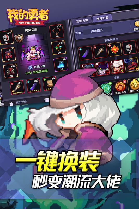 每一个勇者都可以有自己的独特组合,没有固定的套路。进入游戏来体验丰富的技能吧!