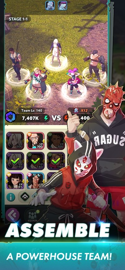 2、收集、装备和升级你的英雄小队,以对抗流动的僵尸和具有可怕能力的幸存者同伴,他们的目标是统治不死世界的荒地;