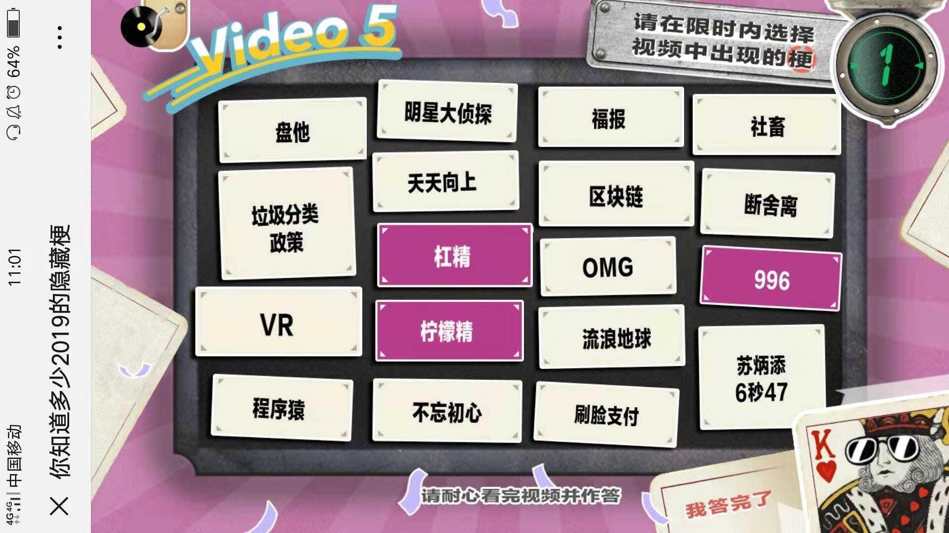 8你知道多少2019的隐藏梗是一款趣味解密游戏游戏以真人视频的方式开展展现,多元化的游戏玩法,把握2019年的受欢迎梗,所以难度姑且算是挺高的。