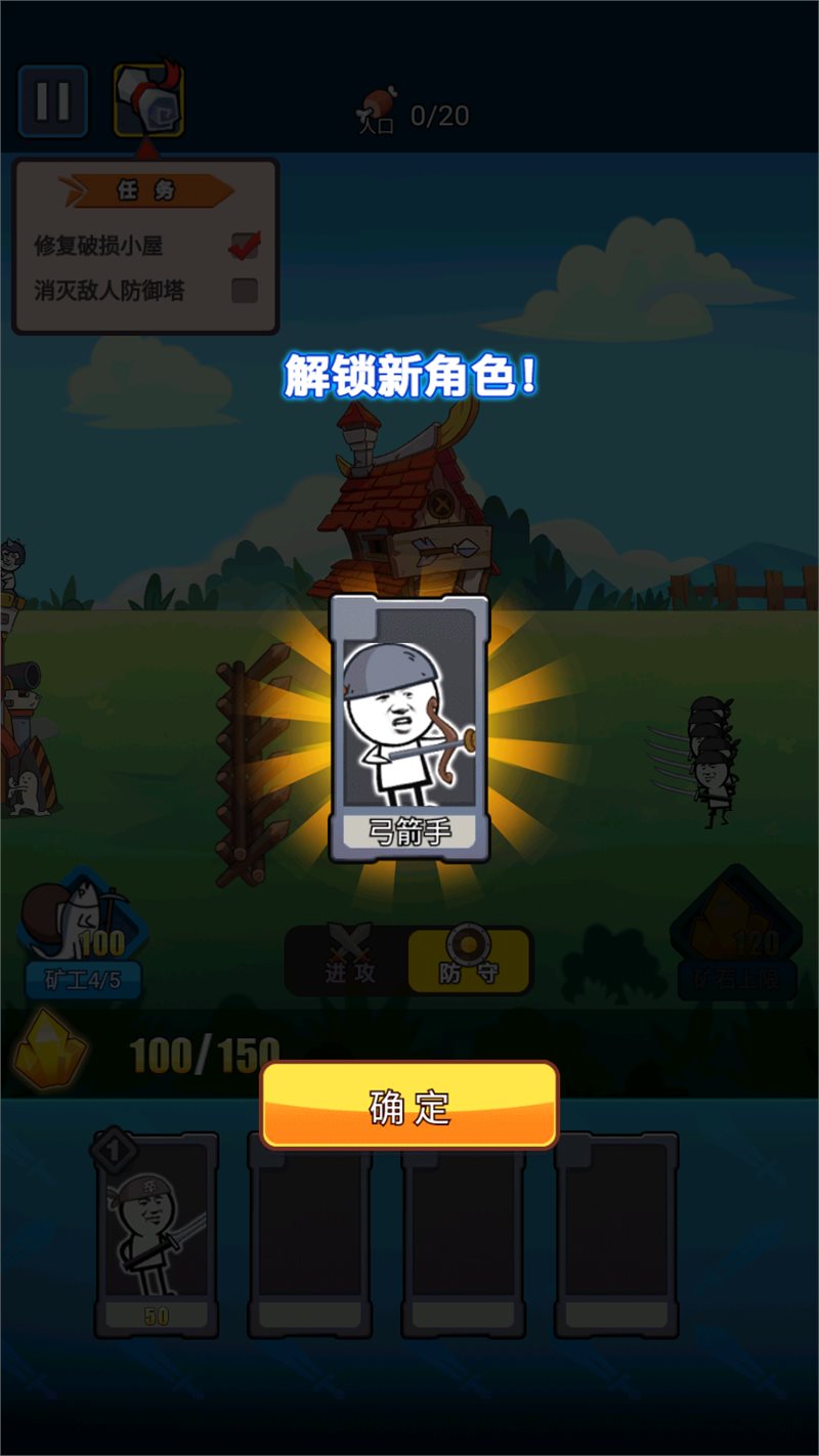 Q版的士兵是匹配的。玩家可以统一魔术游戏表情包,控制新战士作战。