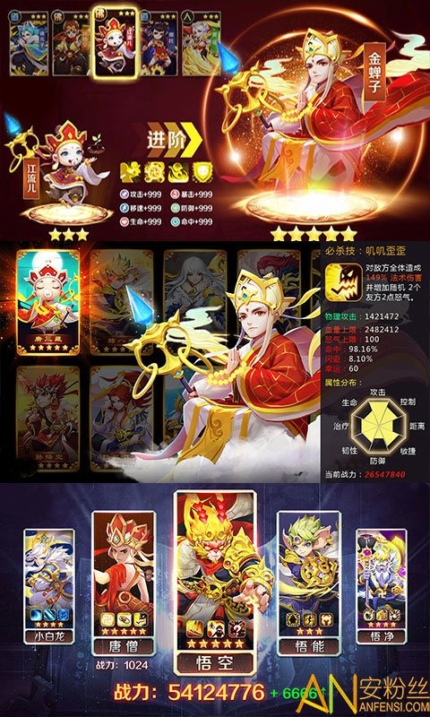 3.星级分为五种不同等级,一星至五星,更有罕见的SSR神将,战力逆天。