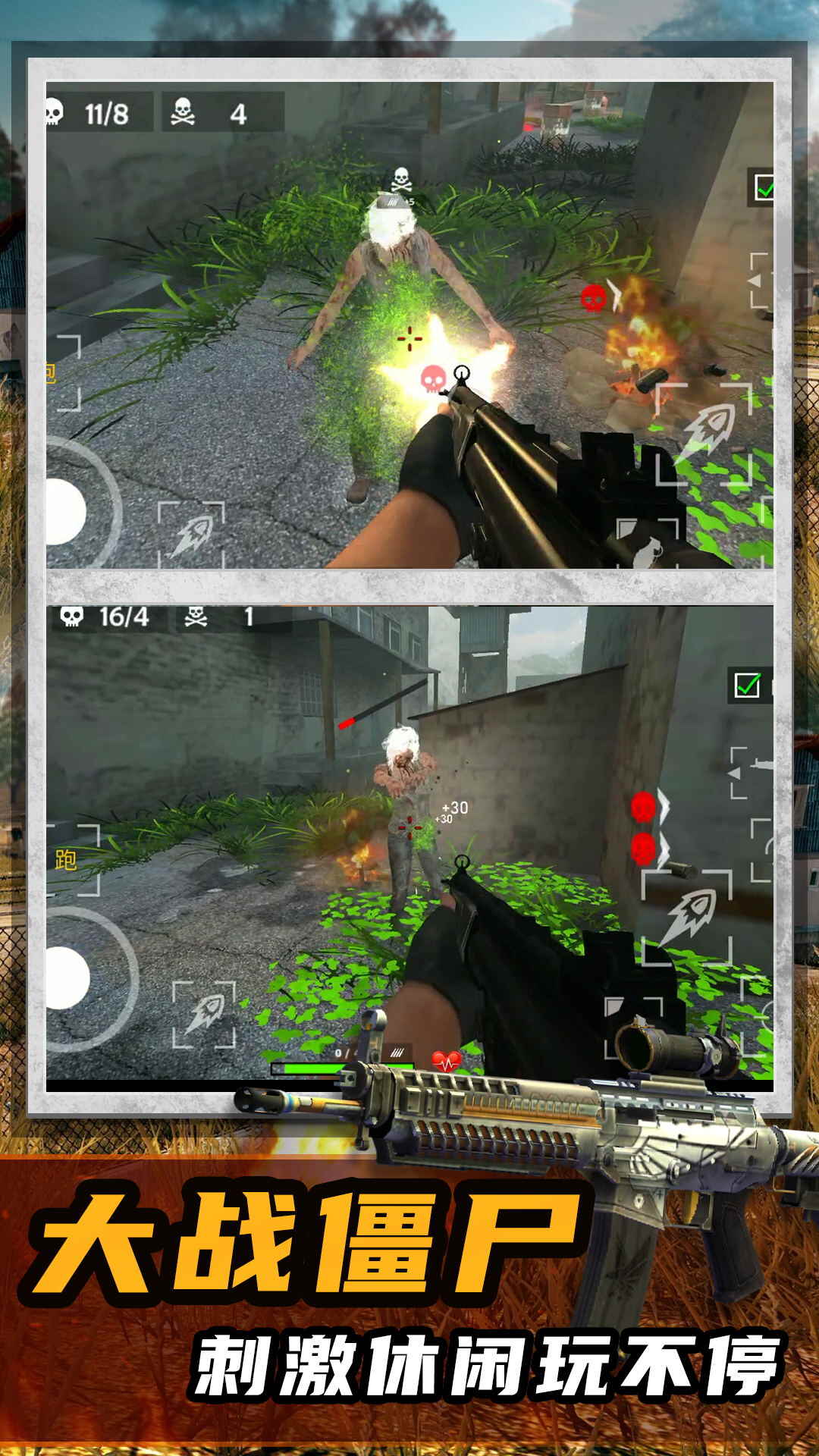 1、绝命射击求生的玩法自由度高,开启多种强力武器,与僵尸对战。