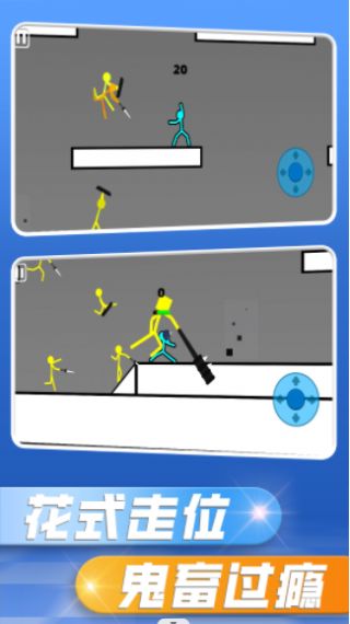 1、多人:这款火柴人格斗支持多人作战,你可以实时匹配游戏中的真人玩家,和全国各地的高手一较高下。