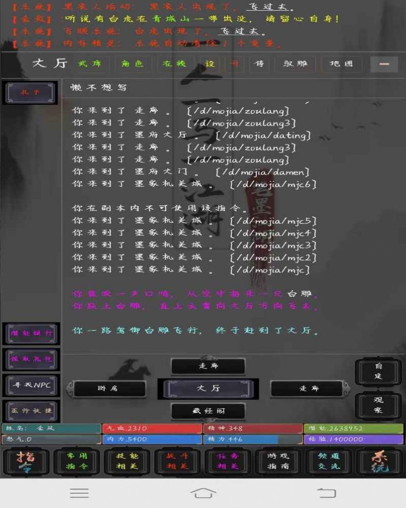 笔墨江湖mud是一款危険を冒す类的游戏。这款游戏能够带给玩家诸多的精彩,你可以在这里尽情的展开挑战,这款游戏将会把你带入到一个文字江湖的世界,你可以通过不断的努力来让自己变成最强大的危険を冒す家,这款游戏蕴含的玩法和模式都是非常多样并且非常おもしろい。