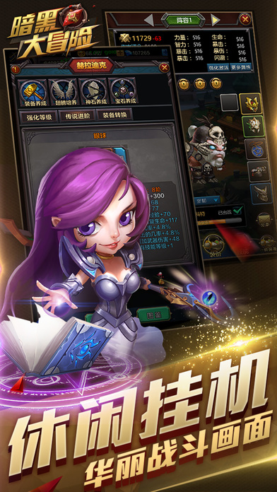 暗黑大冒险正式版是一款采用暗黑风格的RPG手机游戏,装备百搭,经典装备随你挑选,休闲挂机,华丽战斗画面,让人百玩不腻,酷炫外观,装备形象轻松逆转!暗黑大冒险正式版,四大职业,齐聚暗黑,让你感悟情怀!
