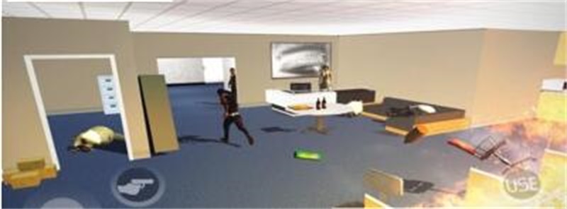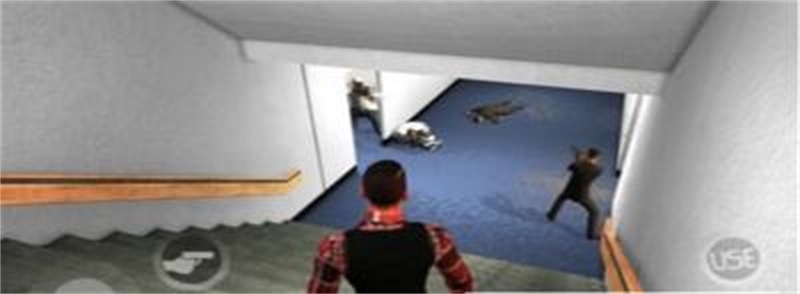 2.操作起来也没有任何的难度,屏幕上有操作动作显示,有拿枪的动作,还有跑的动作。