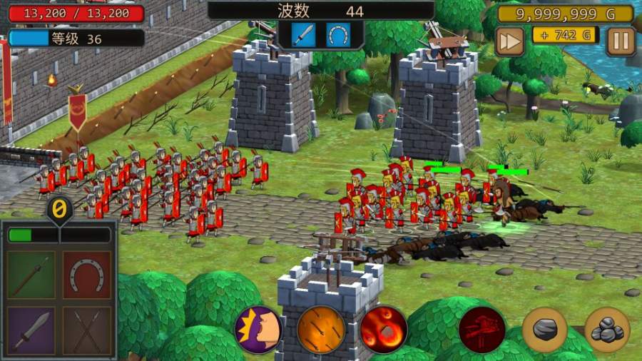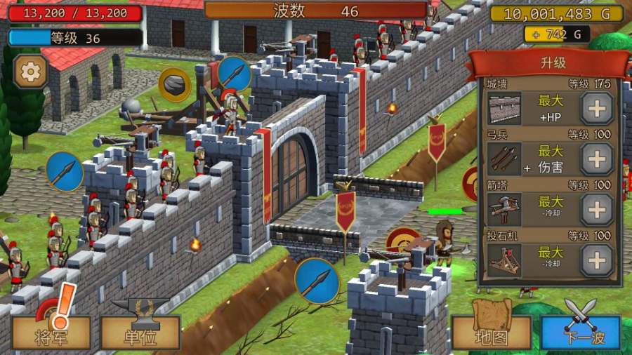 2、升级弓箭手以增加防御伤害;升级炮塔和投石机将增加箭塔和投石机的射速。