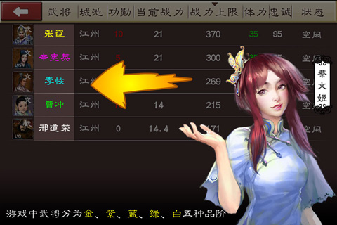 此外还有众多女性武将,貂蝉、大乔小乔、蔡文姬、孙尚香、洛神甄宓自不必说,诸葛亮的老婆黄月英,司马懿的老婆张春华,张飞的老婆夏侯涓,关索的四个老婆,关羽的女儿关银萍,吕布的女儿吕玲绮,马超的妹妹马云禄,甘夫人、糜夫人、邹氏、樊氏,这些湮没在历史中的红颜也将为您重生。武将云集,一统天下。