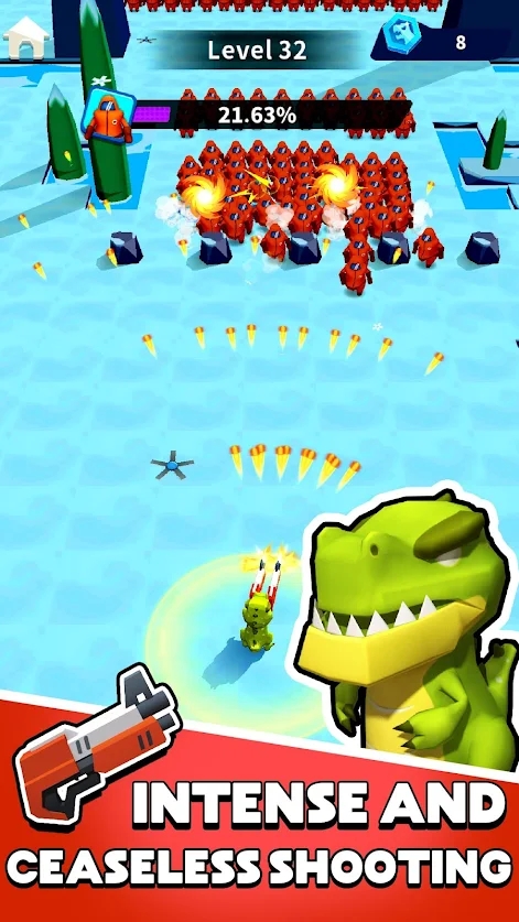 恐龙冲刺群射作为一款可以给用户带来相当刺激的射击体验的手游。手游风格很可爱。你想要控制恐龙射击你遇到的各种敌人。提供了很多恐龙形象,所有都很可爱。可以自由切换,完成任务可以开启更多枪支武器。还可以升级恐龙的等级,提高攻击力。快来下载吧。