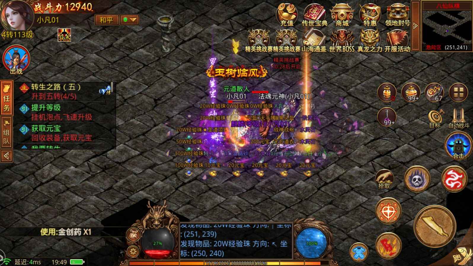 1、装备掉落可产生满屏炫酷光柱,可体验最真实刀刀爆光柱的玩法;