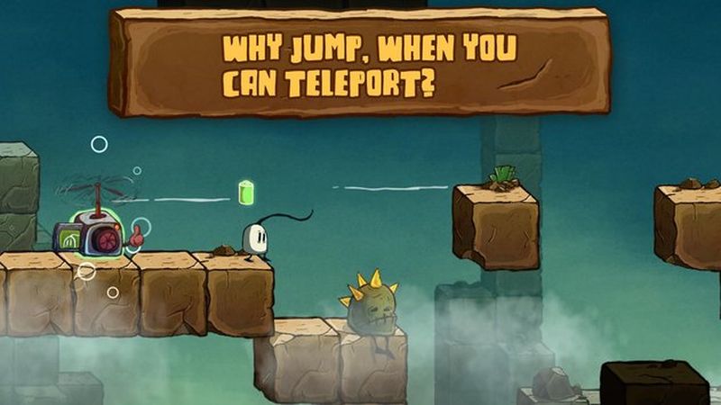 首先出现在用户眼中的是一个奇怪的小生物,用各种白色的碎片搭建了一座房子,突然一阵大风将房子变成了各种碎片卷走了,小生物的假发也被卷走了,留下头上仅有的一根毛。小生物为了找到自己房屋的碎片,开始了他的冒险旅程。小生物有双神奇的鞋子,只要走在地面上就可以充能,当头上的电池变成绿色充满电后就可以进行瞬移。第一关比较简单,并且有操作提示,小生物来到第一个障碍时,有个箭头提示,你想要点击箭头的地方,小生物就直接瞬移到该处,之后继续往前移动。开始冒险,你会看见前方箭头指向一个白色碎片,这就是你收集的第一个碎片,你能直接瞬移到该处,之后用户要知道只有将关卡中所有的碎片收集到才可以三星完美通关。再往前走你会看到另外的两个碎片,你能直接瞬移,但是瞬移之前要注意前面有没有路让你继续充能,这考验的是你的预判能力,如果前面是悬崖而你的充能又没有满,那你就通关失败了。达到终点会有一个云朵上面竖着旗子,到这来就过关了。瞬移收集碎片。收集碎片满后到达终点。