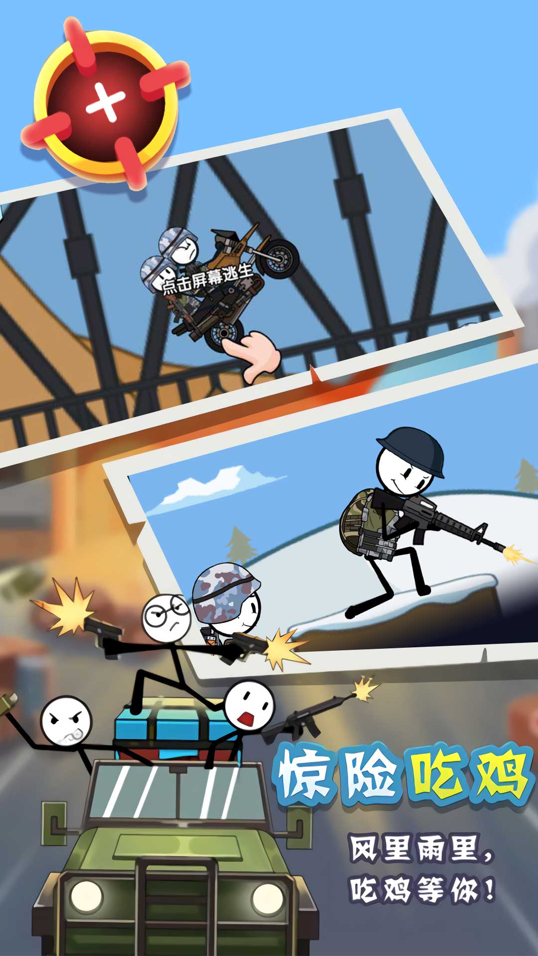火柴人吃鸡战争游戏是一款战争题材的角色扮演游戏,非常多丰富且有趣的挑战在等着玩家们,拥有无比给力的玩法在等你参与,非常多不可思议的吃鸡玩法等你体验,人儿都能操控着火柴人来对抗敌人,你是否能够赢下一场场精彩的战役呢?
