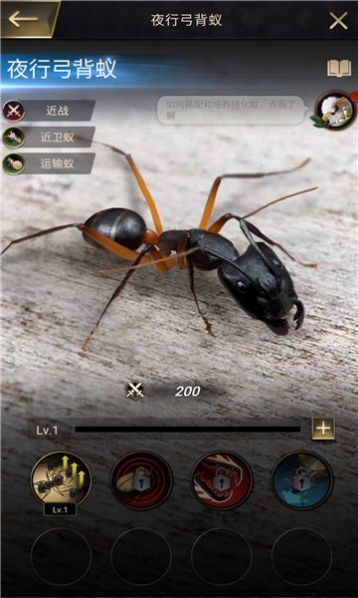2、快速升级巢穴中蚂蚁的等级,让蚂蚁的数量能快速增加,快速打造一个新的蚂蚁帝国。