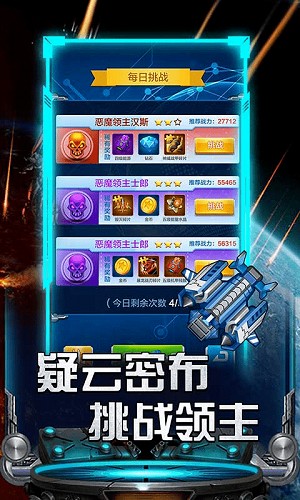 游戏中有许多关卡是可以直接挑战的。只有通过前一关并击败BOSS才能开启后一关的难度。在游戏里玩家可以升级他们的飞机以获得更多的动力。