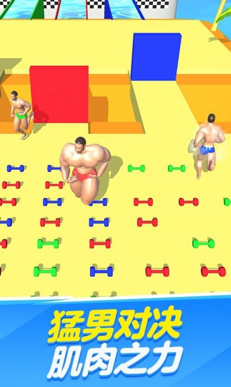 猛男健身大作战游戏中玩家对应每一个颜色猛男不是一天练成的,超级多的肌肉让你打倒你的对手,在这款猛男健身大作战游戏里面玩家需要不断的在跑道上面收集超多的哑铃来锻炼自己的身体,科学的训练是最重要的,喜欢的朋友快来下载体验吧。