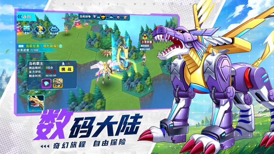 1、动漫卡通风格的数码世界冒险类游戏,拥有精彩纷呈的挑战和更多的故事等你探索;