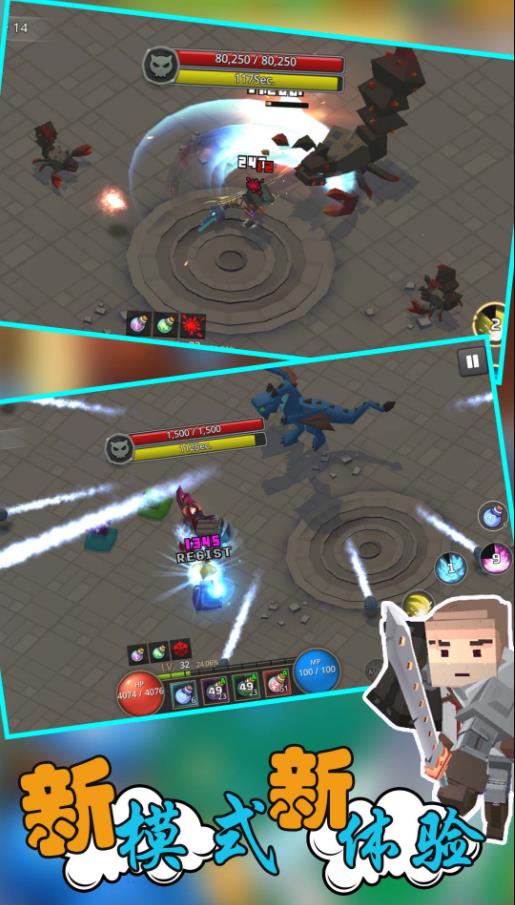2、角色的技能也可以根据战场需要随心所欲的搭配,3D的像素风,丰富多样的场景。