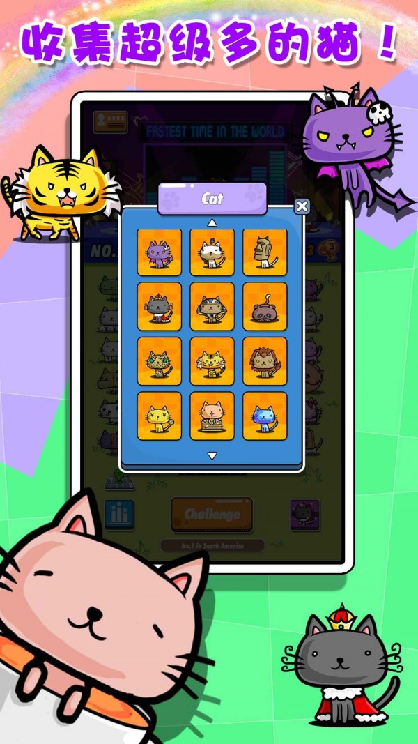 3、喵喵游戏作为一款非常刺激和欢乐的消闲游戏,以卡通萌猫为主角。