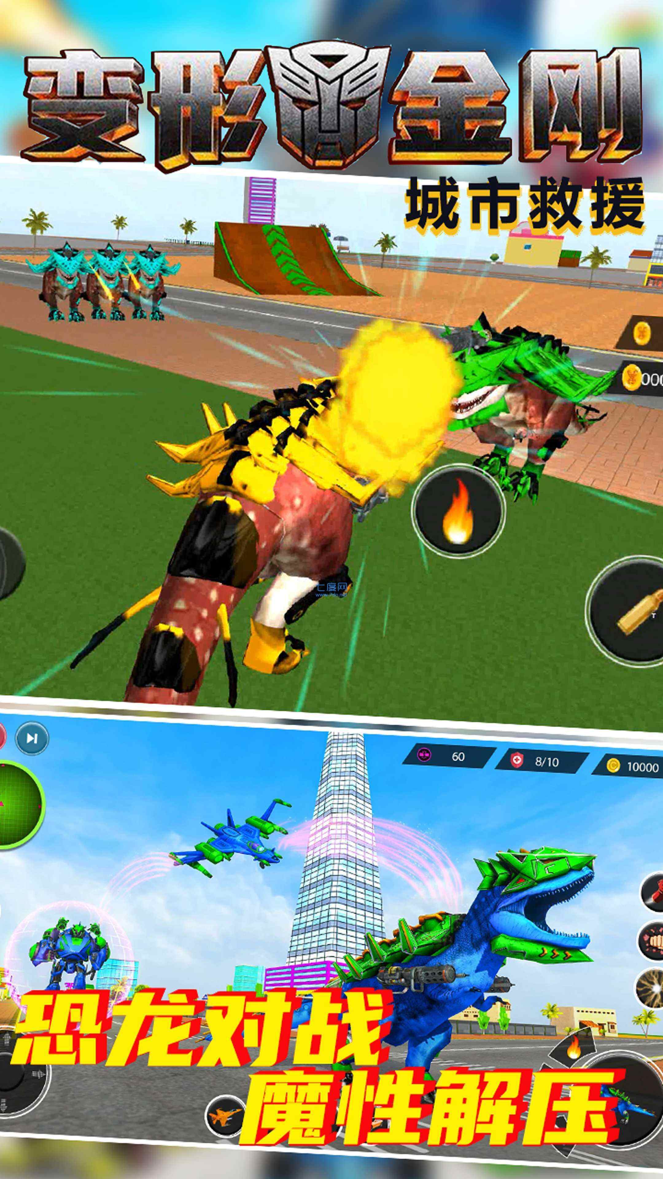 3、在这个恐龙机器人变形游戏中,您可以变形为喷气机器人或汽车机器人,您认为当时适合攻击的机器人赢得战斗,并使这个游戏与其他真正的机器人英雄游戏一样。