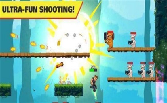 3、射击冒险类型的手游,热血的闯关玩法;