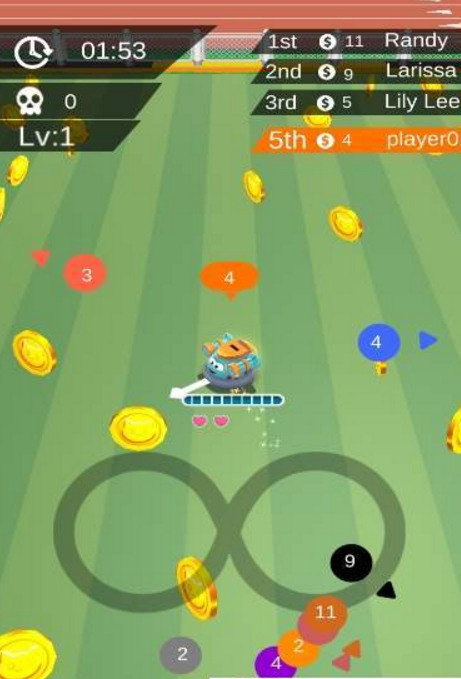 把每个人都赶走,变大,成为地图上最后一只获胜的猫。一个有趣和快节奏的超休闲.io游戏。每只猫都有独特的骑行方式:汽车、斗杆、滑板、飞碟、坦克……你说出它的名字。