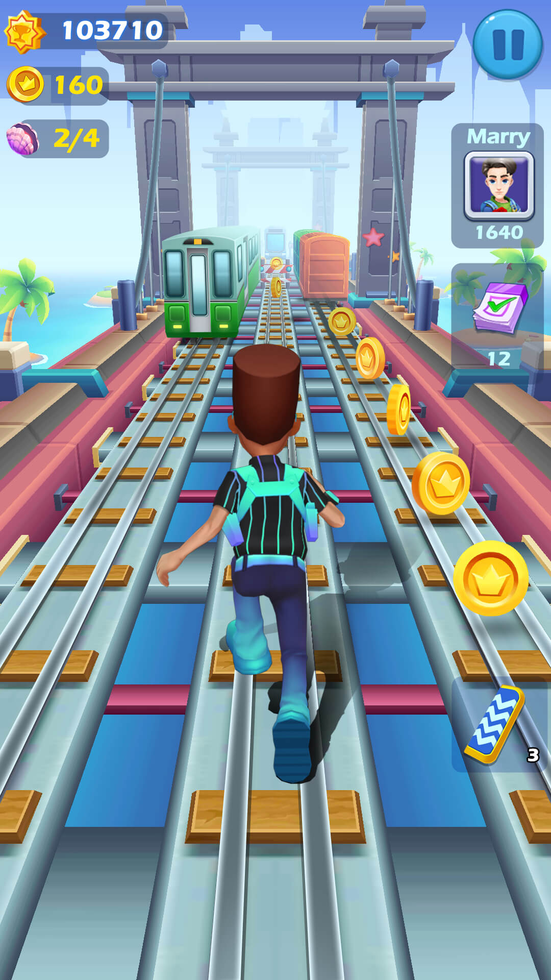 地铁小公主作为一款刺激有趣的障碍挑战赛跑酷闯关手游,地铁小公主游戏上线了全新有趣的障碍赛道和挑战模式,可以在游戏里欢乐闯关收集金币和道具,提升自己的跑酷速度。