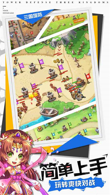 4、结合了可爱的绘画风格和三国演义,创造了一款纯粹的塔防手游。