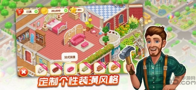 - 创新玩法:闯关完成任务,设计专属于你的豪宅和花园