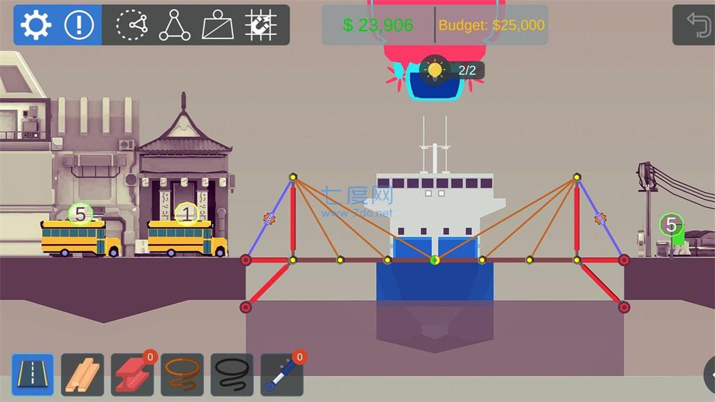2、造桥模拟器游戏提供了许多场景,并允许你使用各种道具来修复桥梁。
