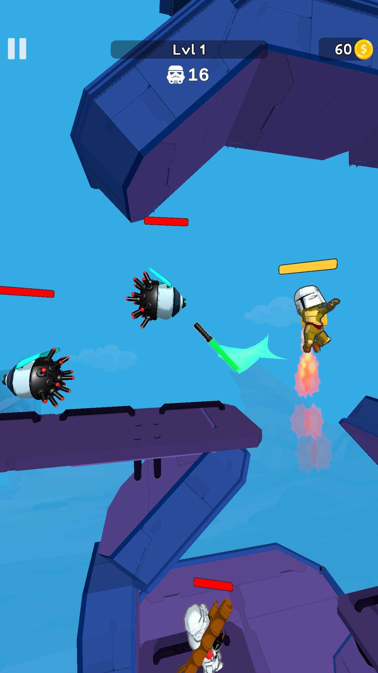 1、游戏里面玩家灵活操纵你的军刀英雄free作战,注意躲避敌人的攻击,顺利的完成闯关任务。