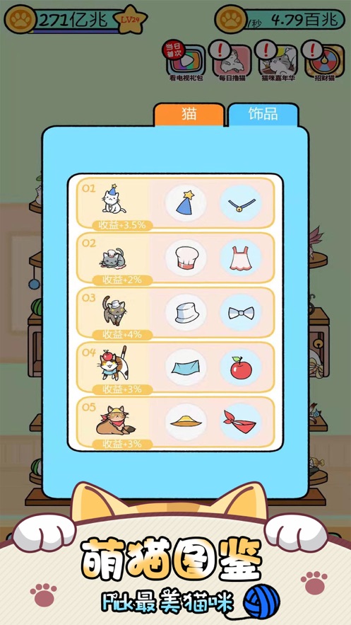 4、你还能为了你的猫咪收集各种大量的玩具和配件!