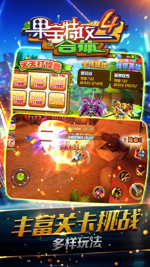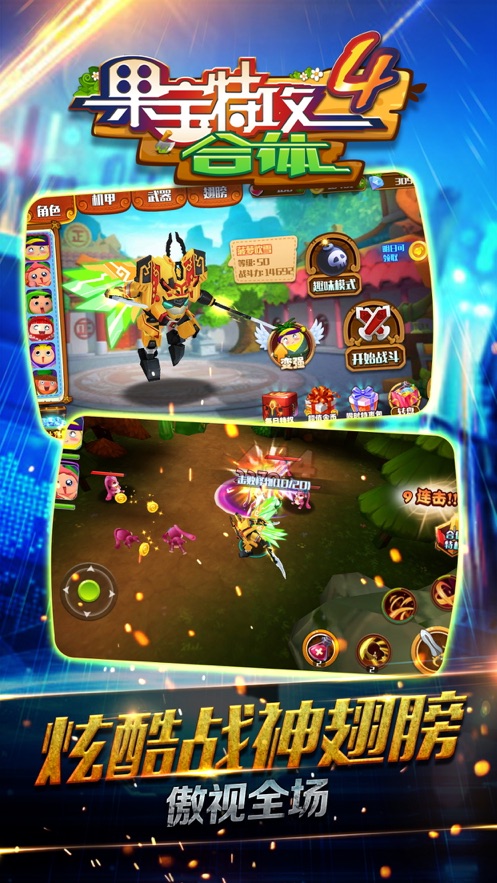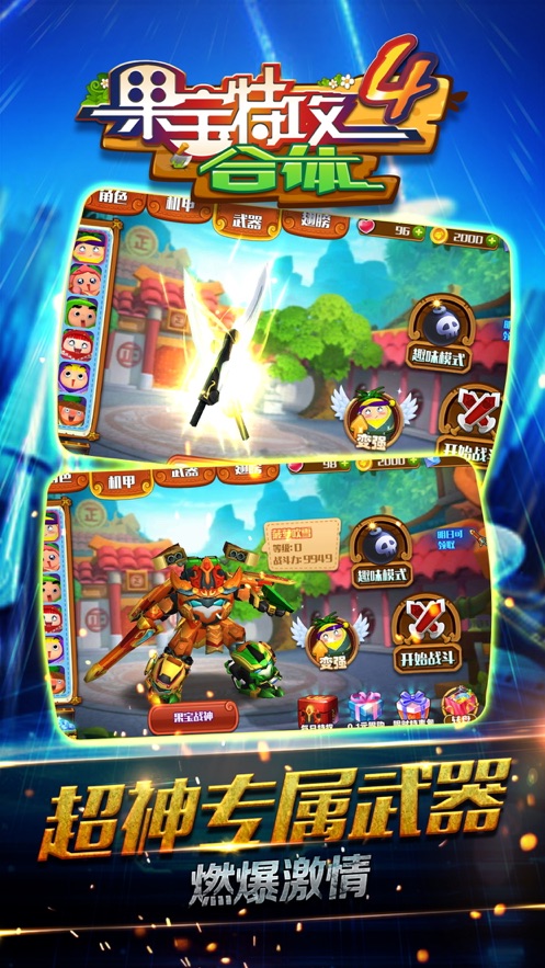 2、不同技能、不同战斗形态,各显神通,更有霸气果宝战神助你称霸全场。