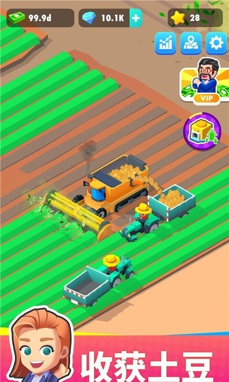 我的马铃薯公司作为一款卡通风格呈现的挂机经营游戏,游戏心得简单轻松易上手,在游戏里面用户将经营自己的马铃薯加工厂,招聘更多的员工来完成所有岗位上的加工任务获取更多的收益。