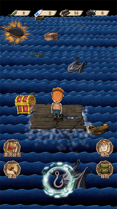 1、享受精彩的木筏生存玩法,你的移动范围非常有限,你必须依靠木筏继续生存。