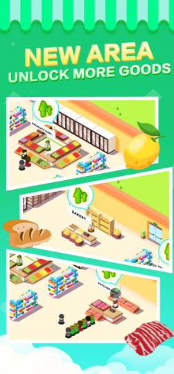 1、用户将扮演超市的店长,通过简单的综合操作开启新产品,打造繁荣的超市。