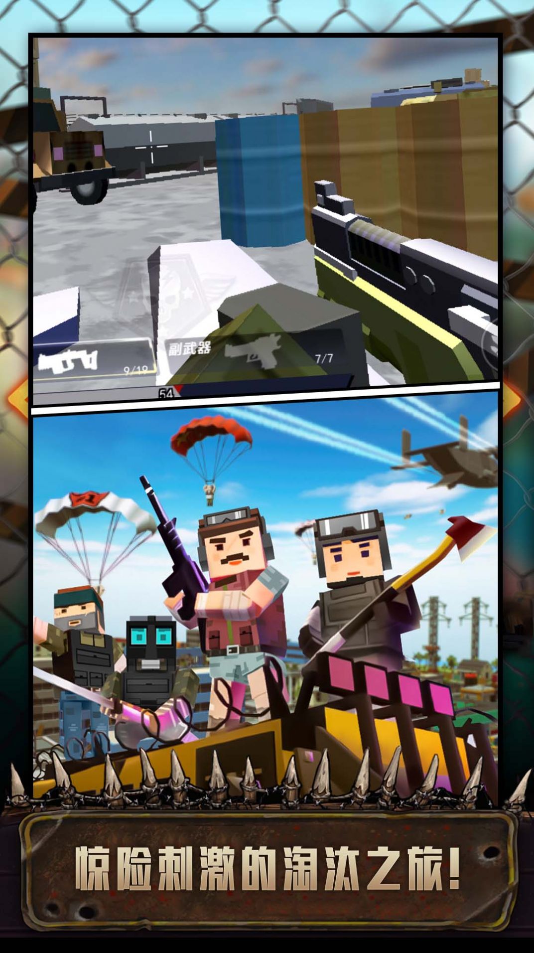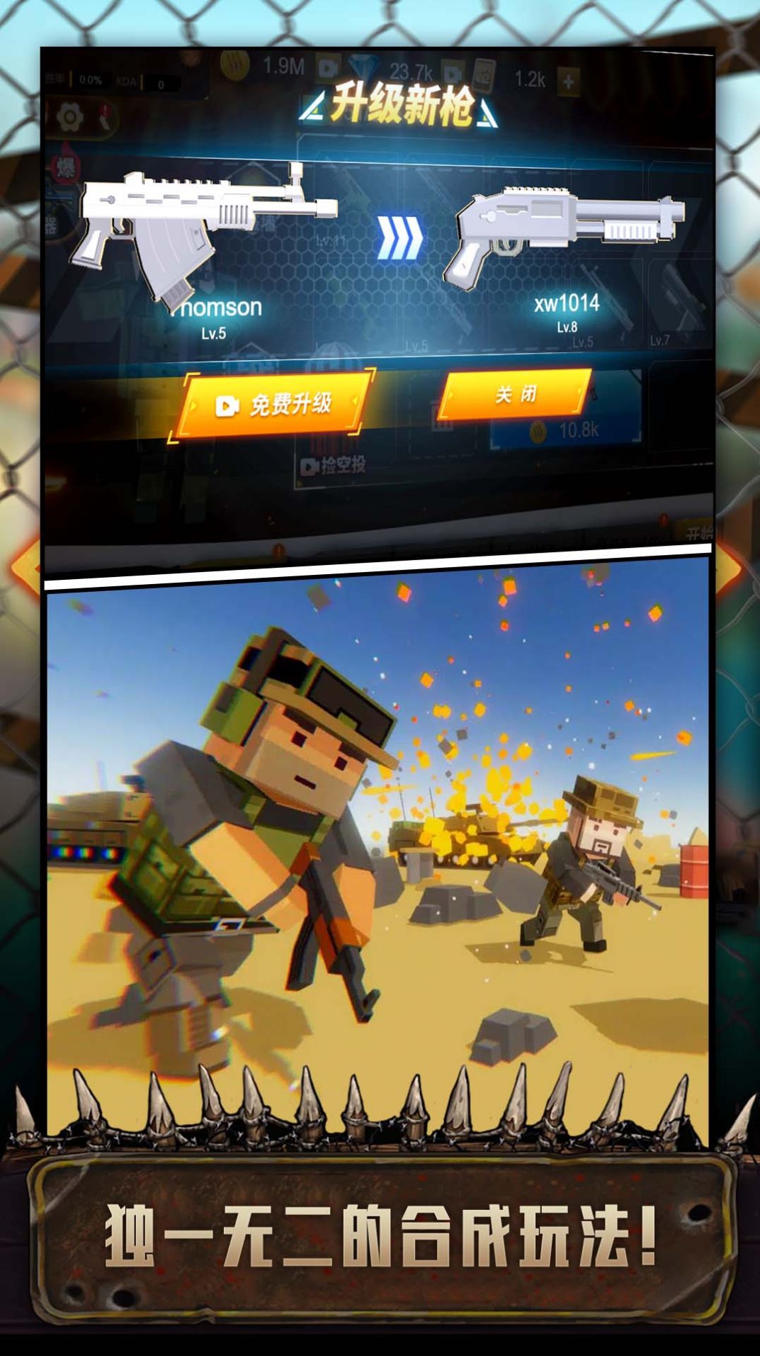 1、融合合成玩法的3D迷你吃鸡休闲射击游戏来袭,Q可爱像素风格画面设计;